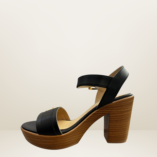Sandalia de Plataforma Negra con Hebillas Doradas - Pauile- 3769