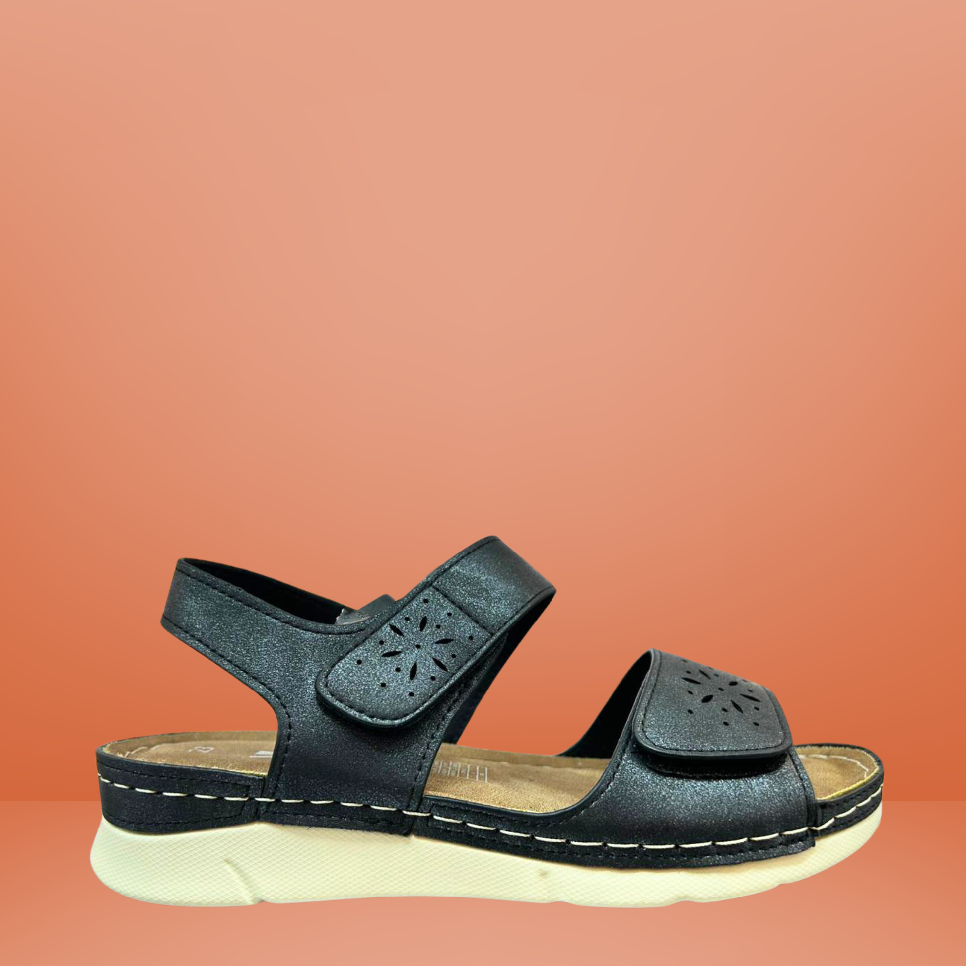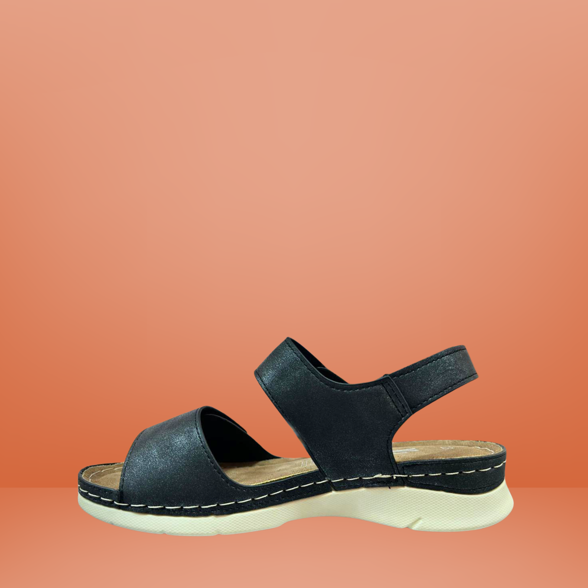 Disfruta cada paso con esta sandalia negra diseñada para brindar máximo confort y ajuste personalizado. Su diseño de doble correa con cierre tipo velcro permite adaptarse perfectamente al pie, ofreciendo mayor estabilidad y seguridad al caminar